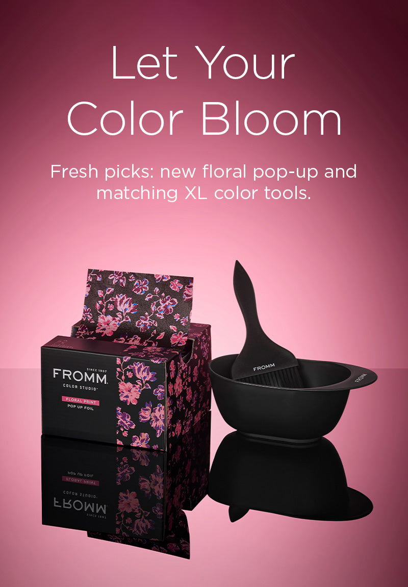 Bold floral print pop-up foils and matching extra-large color brushes and bowls.
