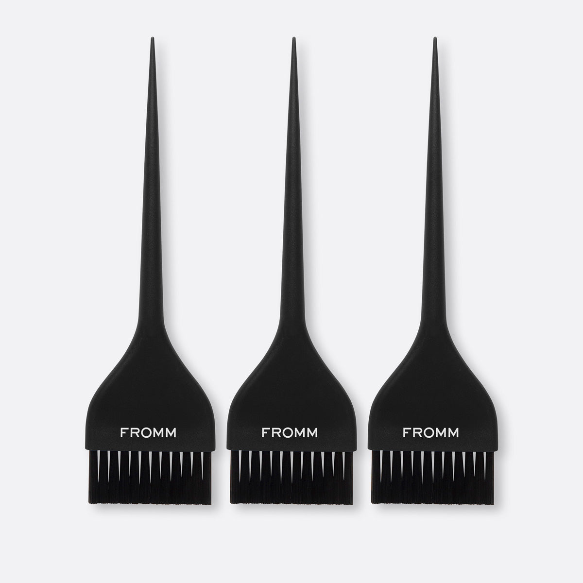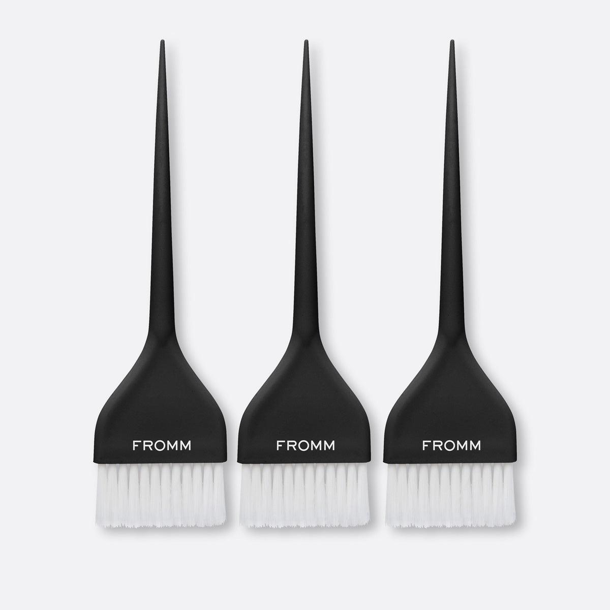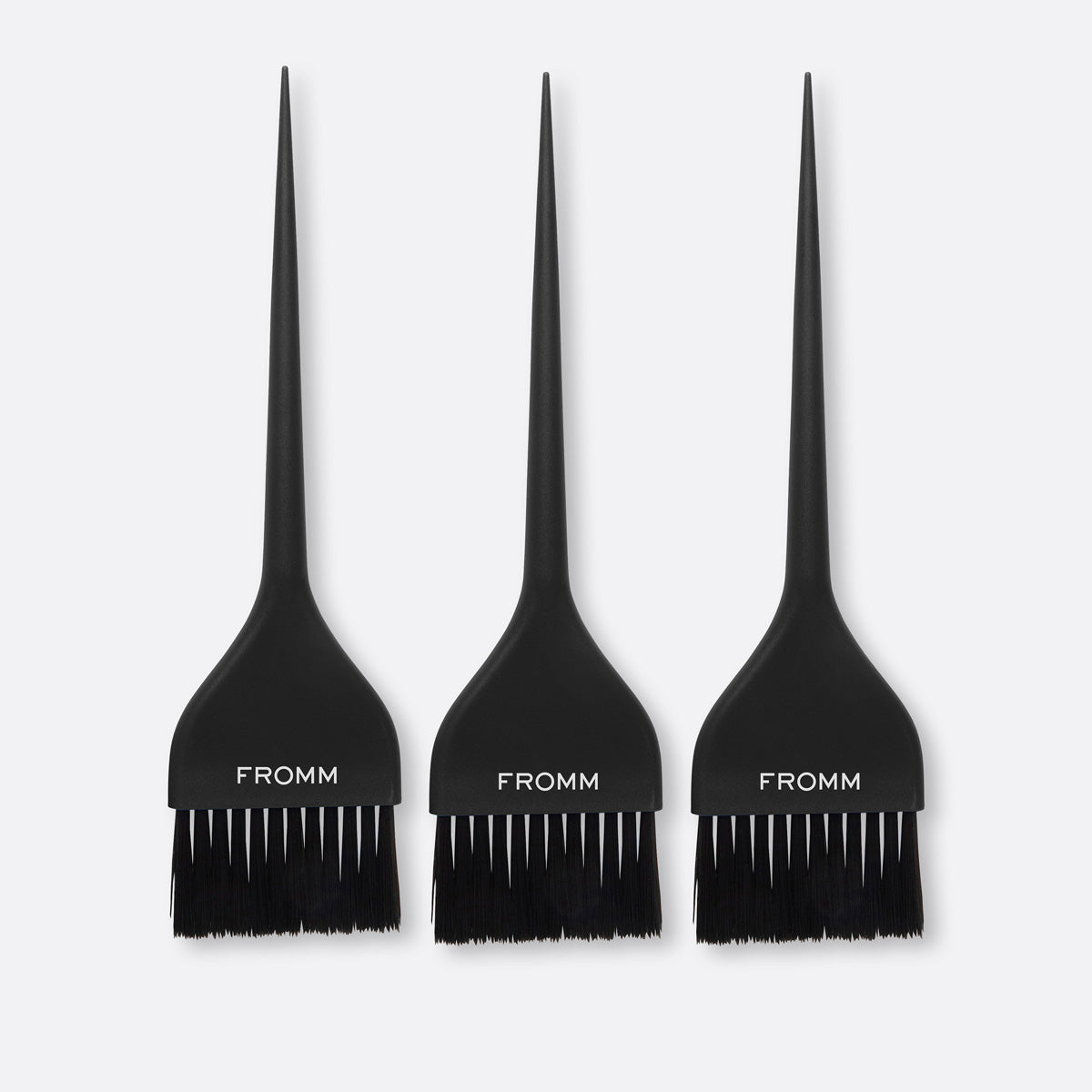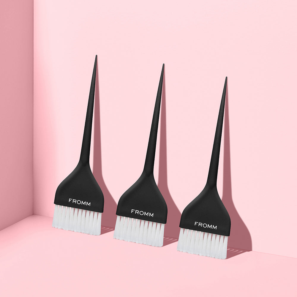 Feather soft wide color brushes for freehand painting, balayage and blending. Set of three professional color brushes with a stainproof noir black matte finish.