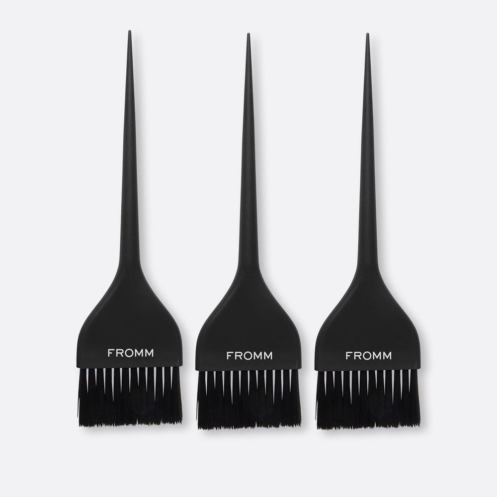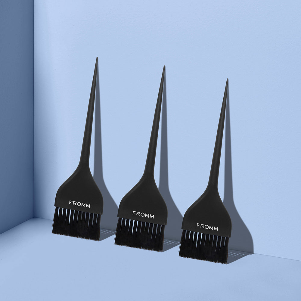 Soft all-purpose wide color brushes for all color techniques. Set of three professional color brushes with a stainproof noir black matte finish.