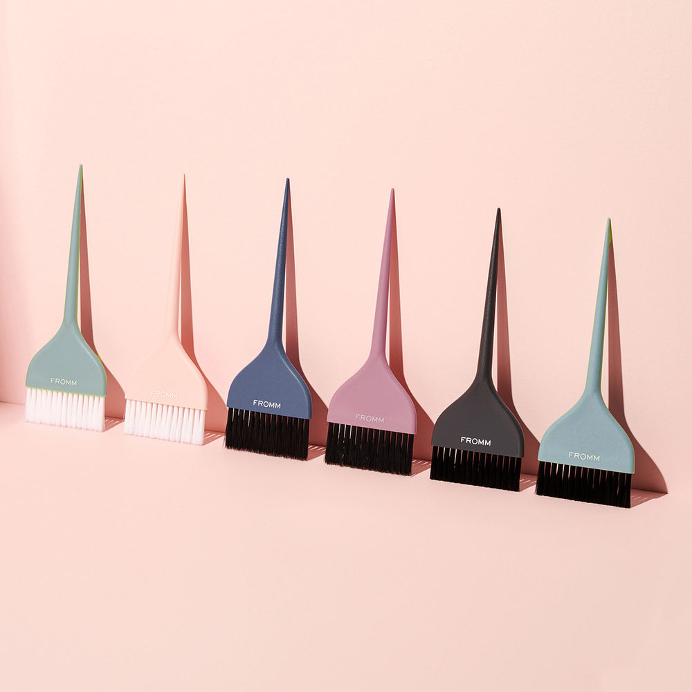 Firm extra wide color brushes for classic techniques including all over color, highlights and root touch ups.