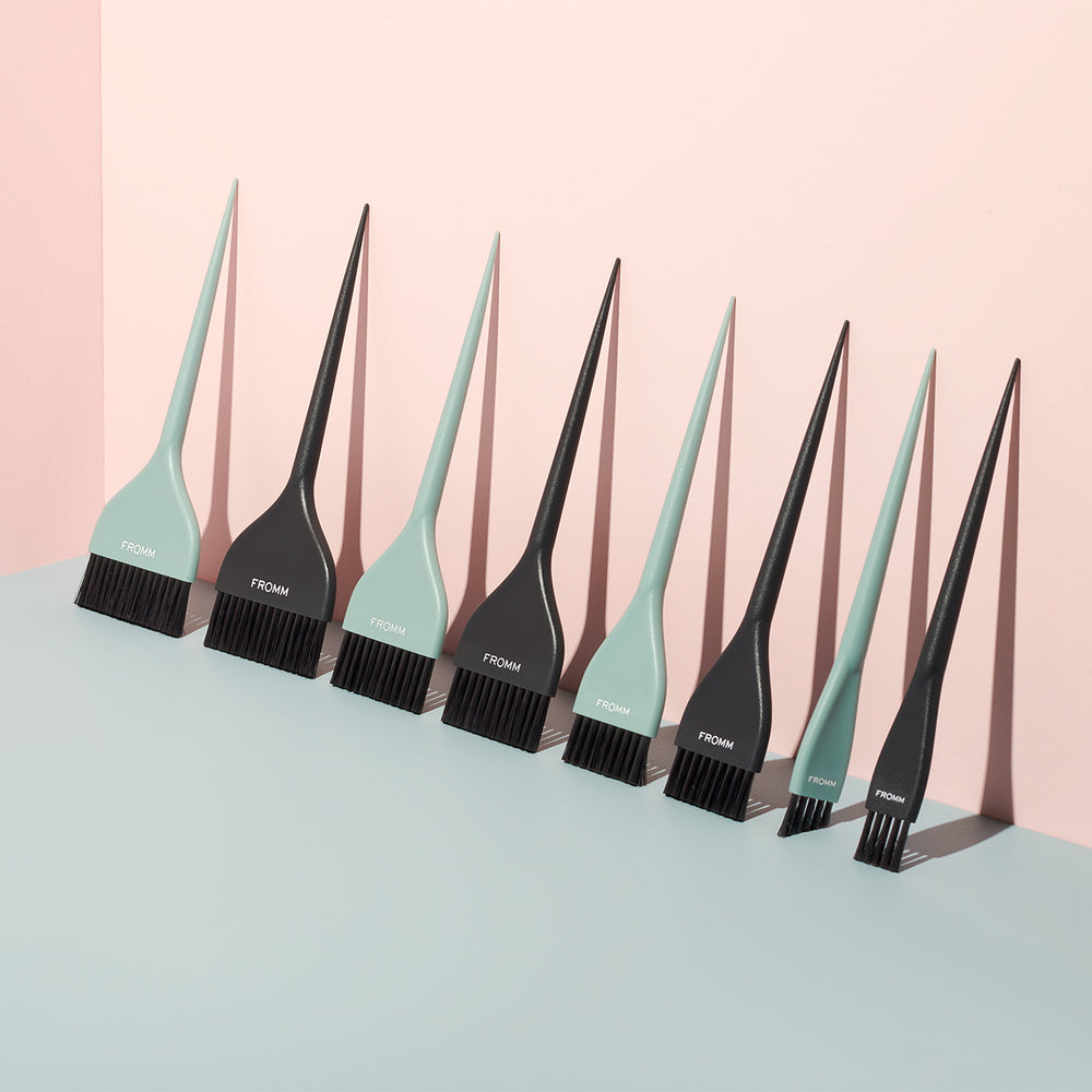 Firm extra wide color brushes for classic techniques including all over color, highlights and root touch ups.