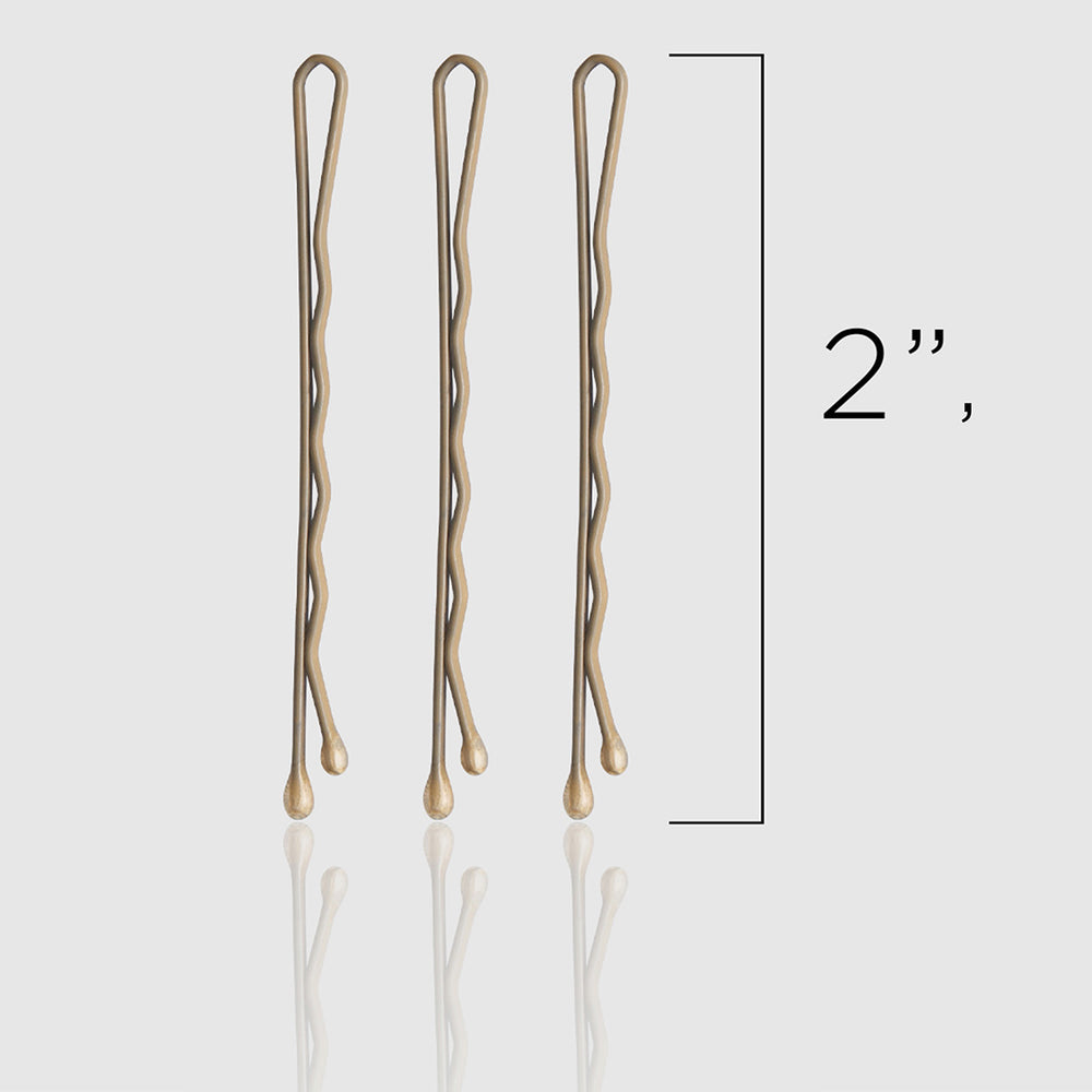 2" bobby pins with crimped design for securing hairstyles, flyaways and baby hairs. True to life colors and matte finish hide perfectly in hair.