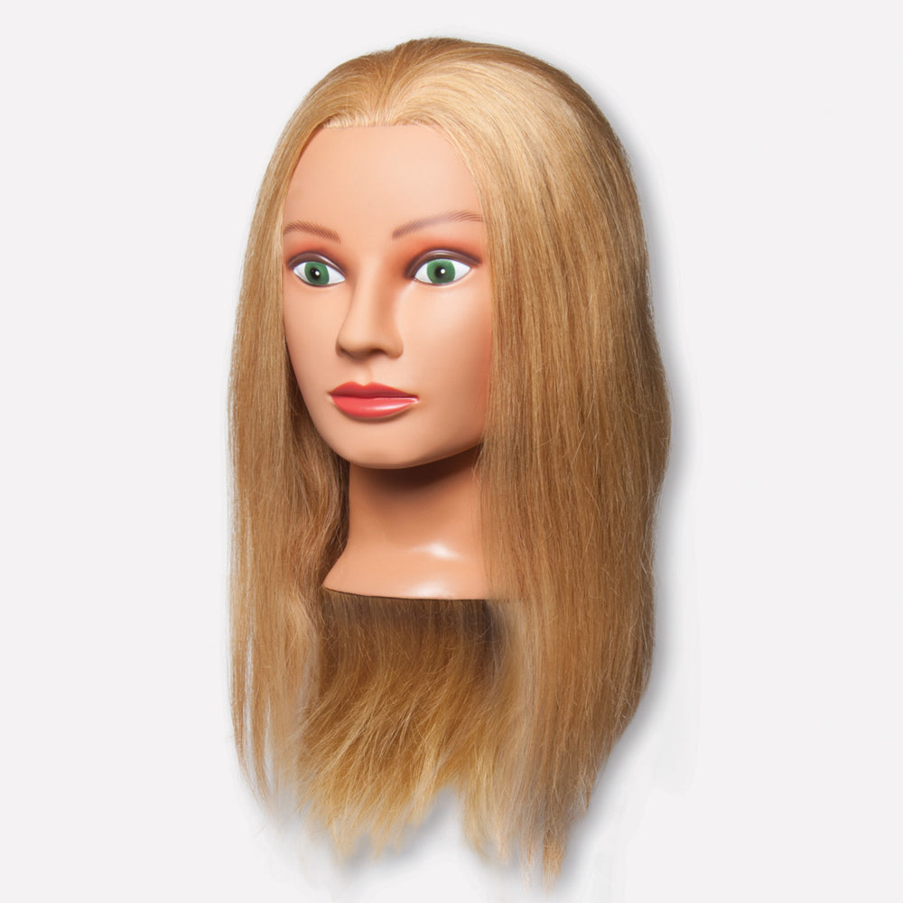 100% human hair mannequin for professional results in hair cutting, hair styling and hair color.