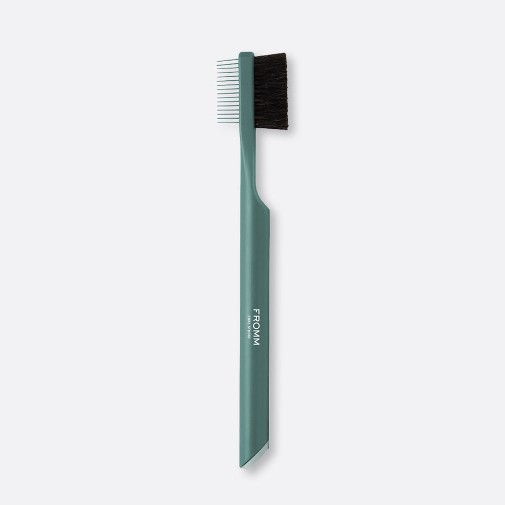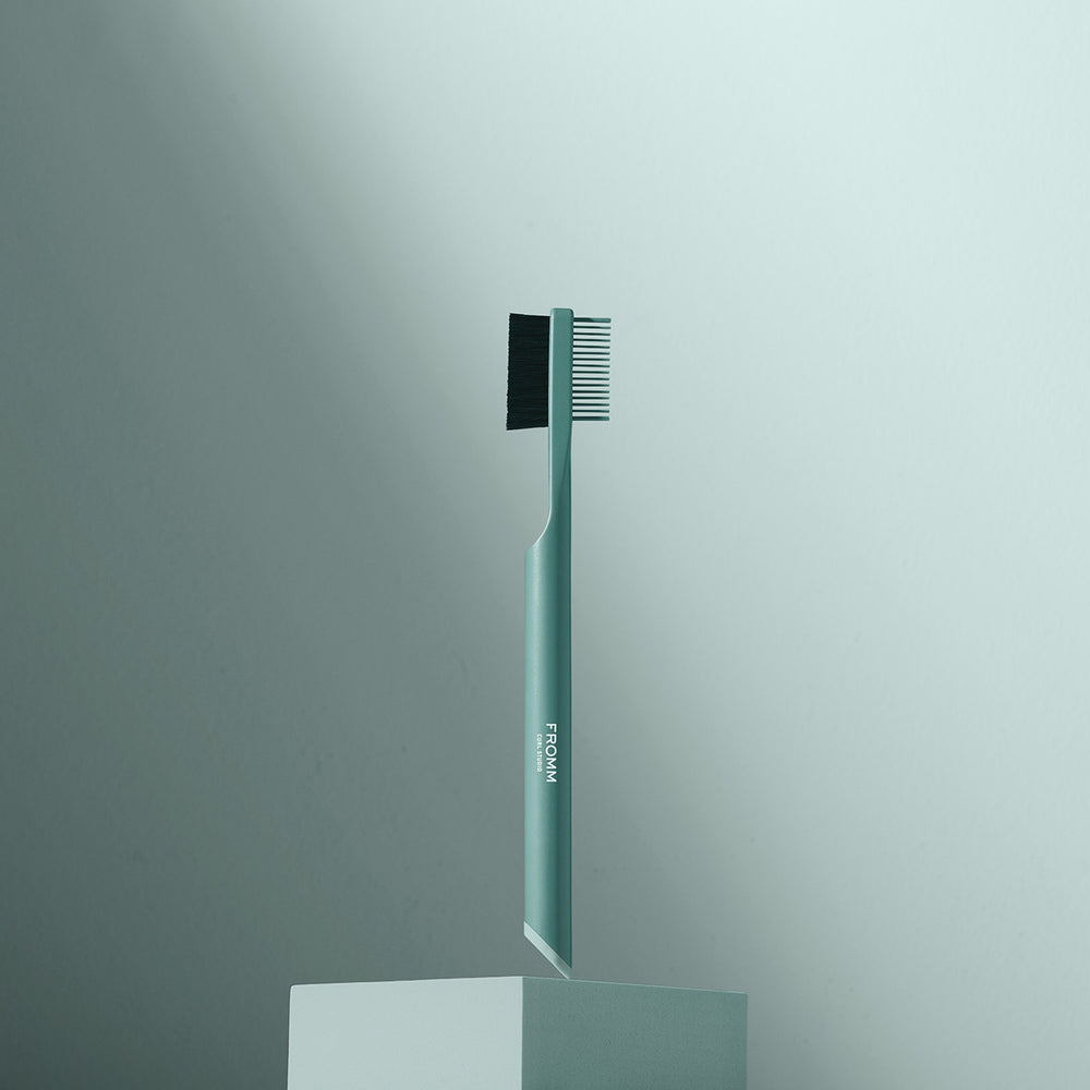 Edge shaper brush and comb styles and shapes edges and baby hairs.