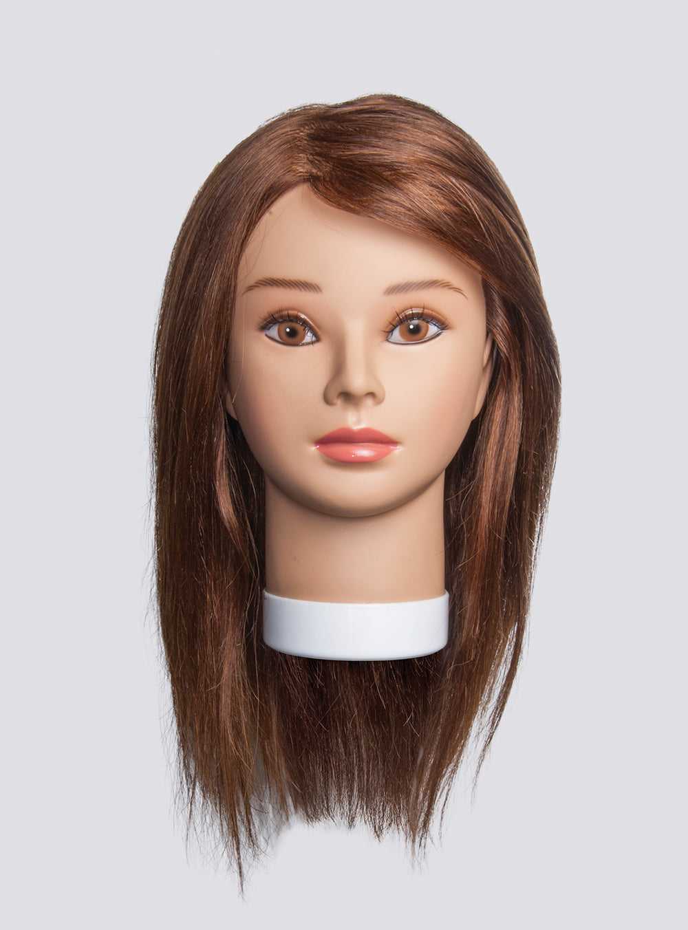 Premium quality practice mannequin with natural implantation for expert results in hair cutting, hair styling and hair color.