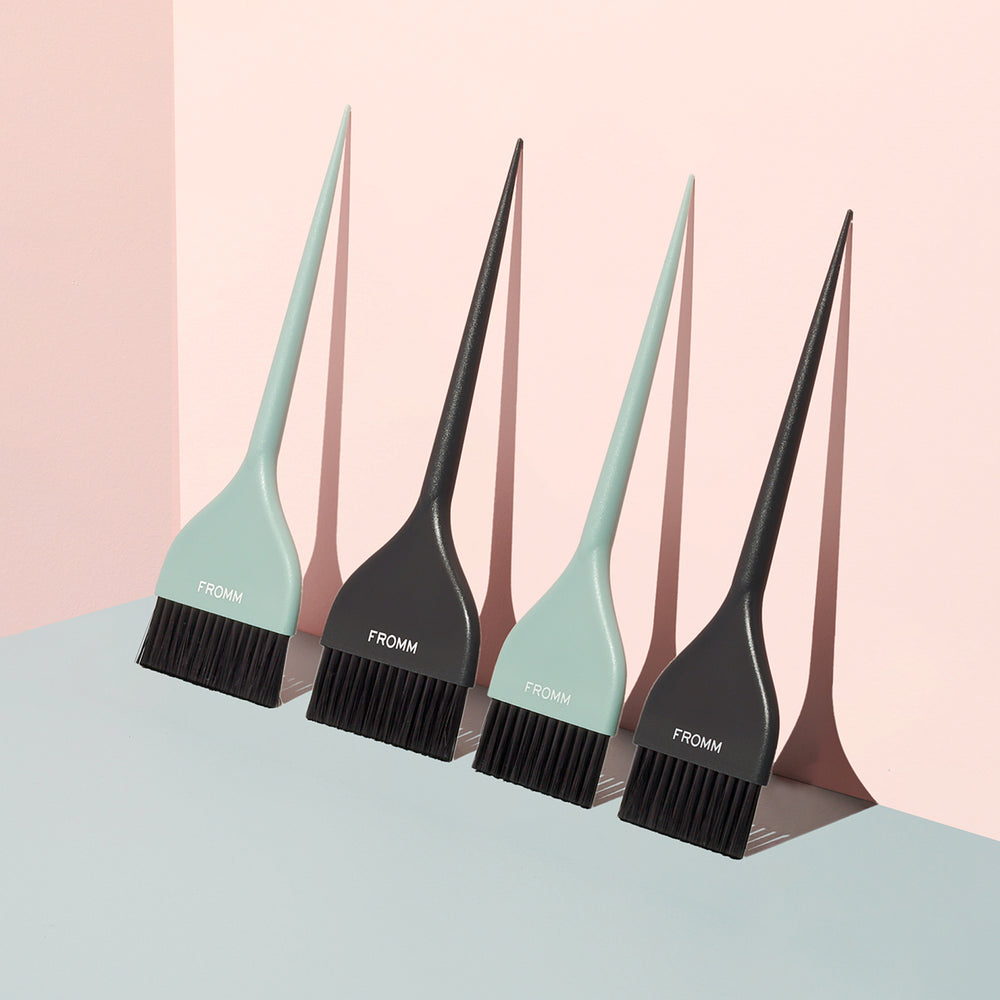 Firm wide color brushes for classic techniques including all over color, highlights and root touch ups.