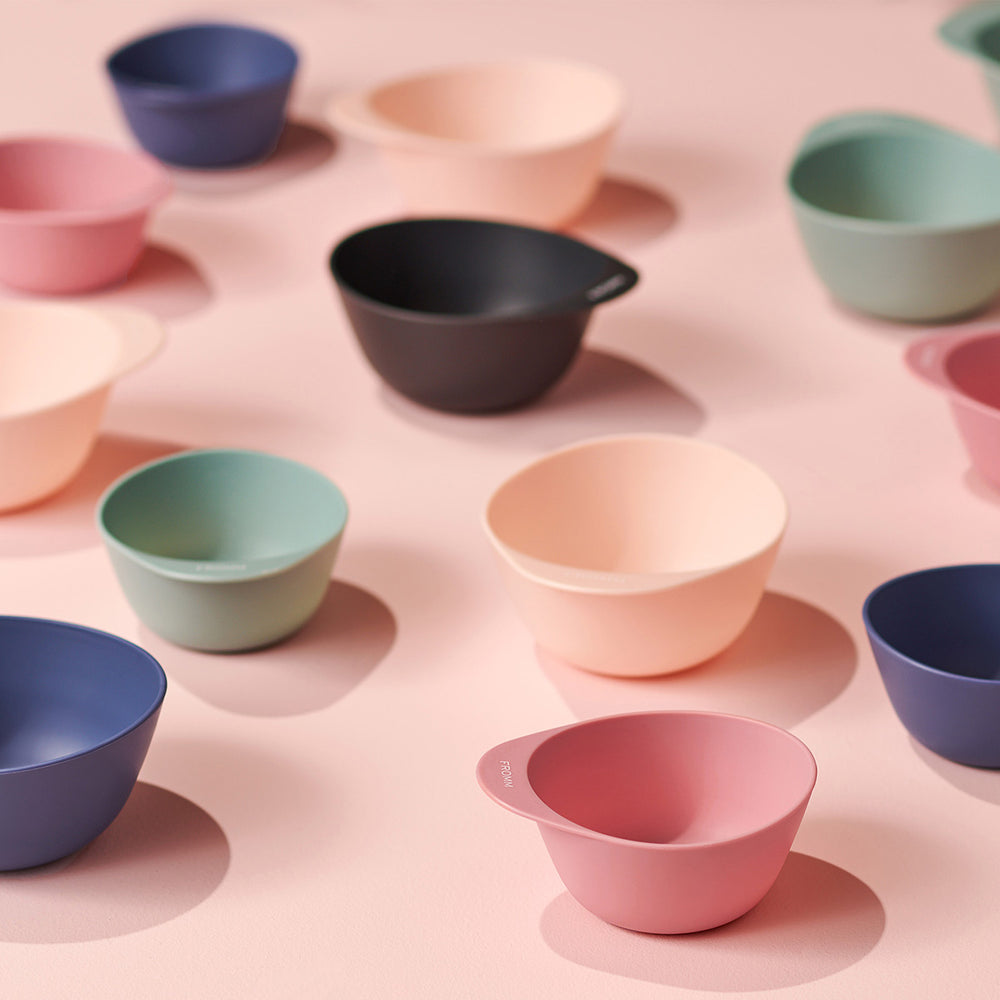 Set of 3 large size mixing bowls for multi color mixing with a stainproof matte finish.
