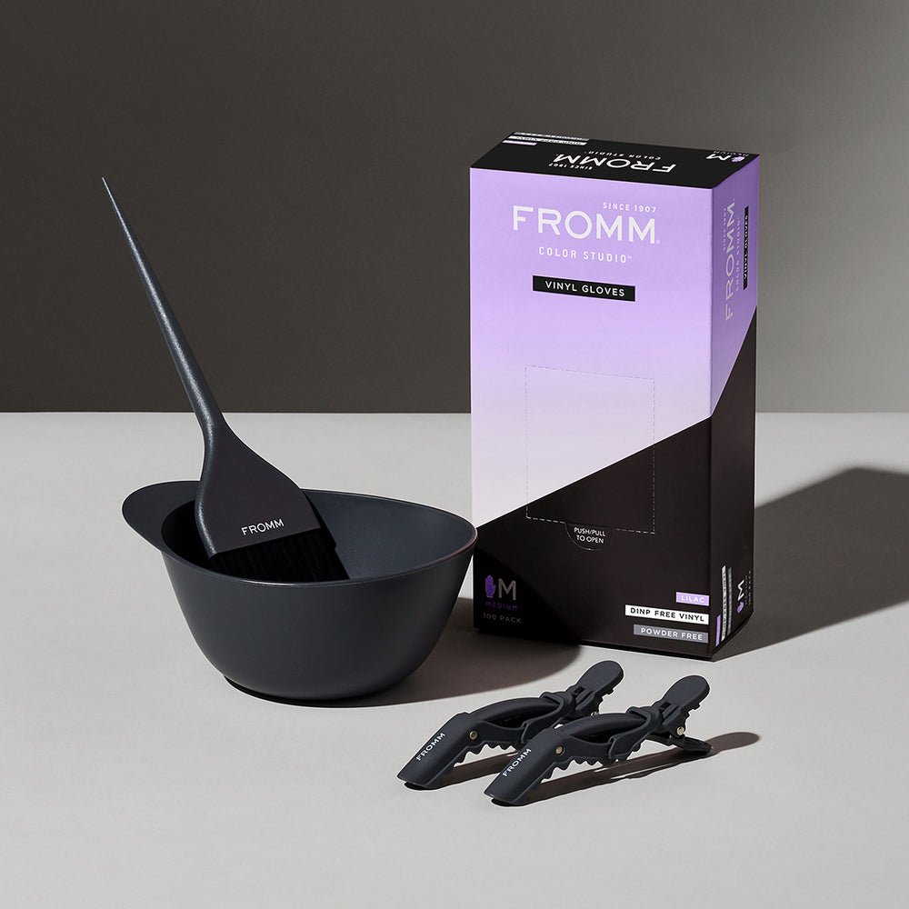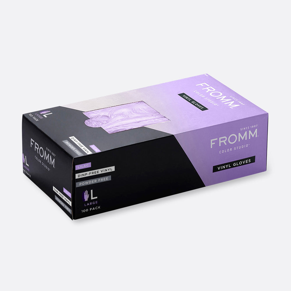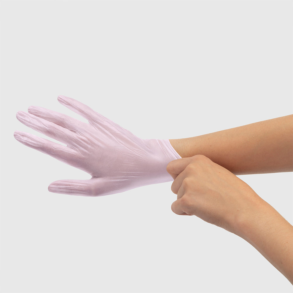 Essential lilac powder-free vinyl gloves for protection from salon chemical processes.