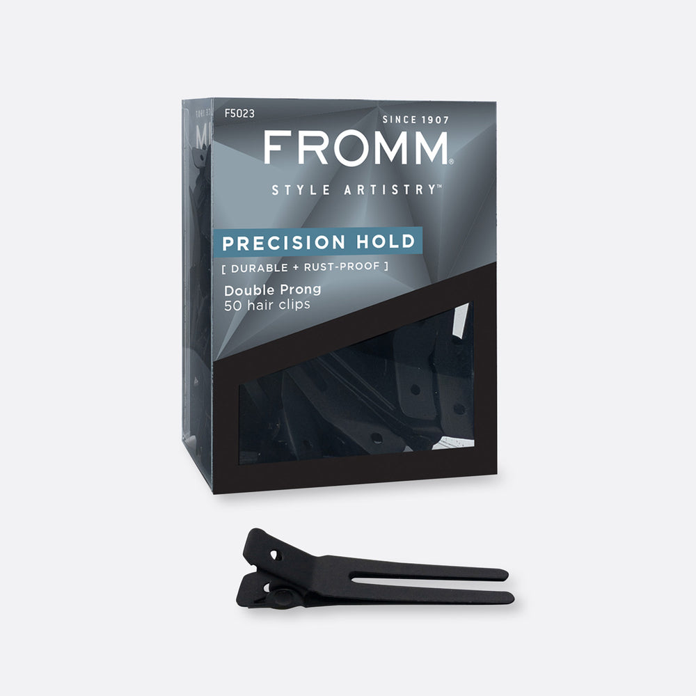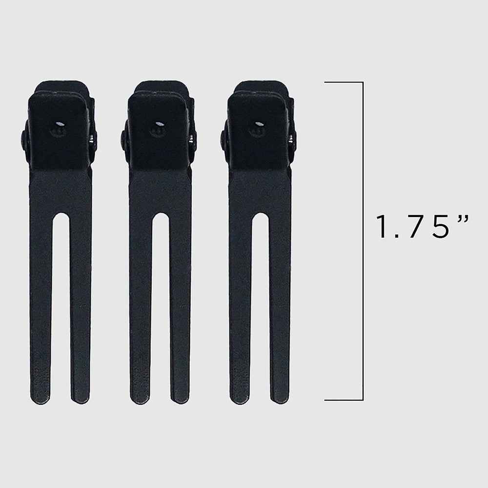Double prong clips for pin curls, securing rollers in place, adding lift at the roots, holding hair in place while styling, blow drying, cutting or makeup application.