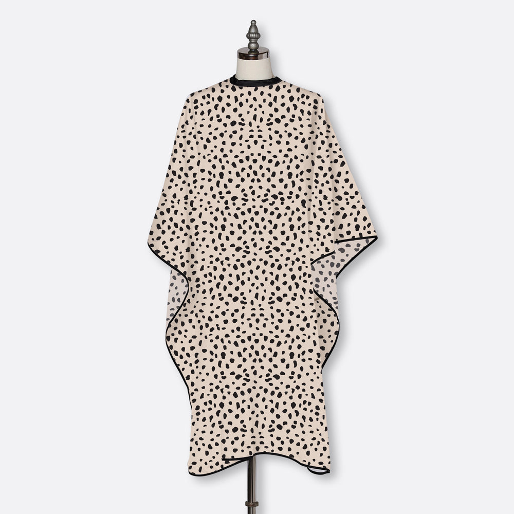 Water and stain repellent, lightweight and breathable hairstyling and hair cutting cape.