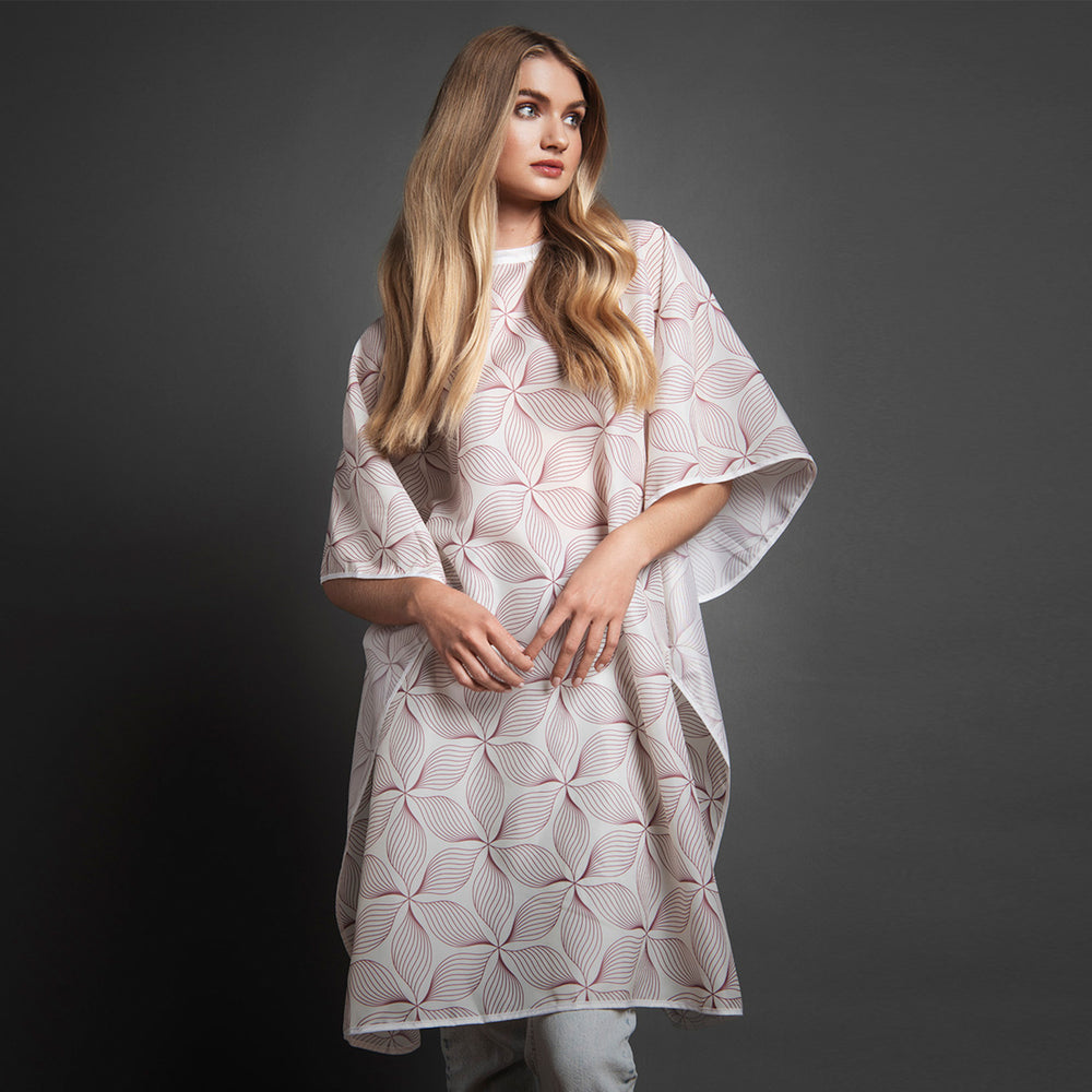 Teflon®-coated, water repellent, lightweight and breathable hairstyling and hair cutting cape.