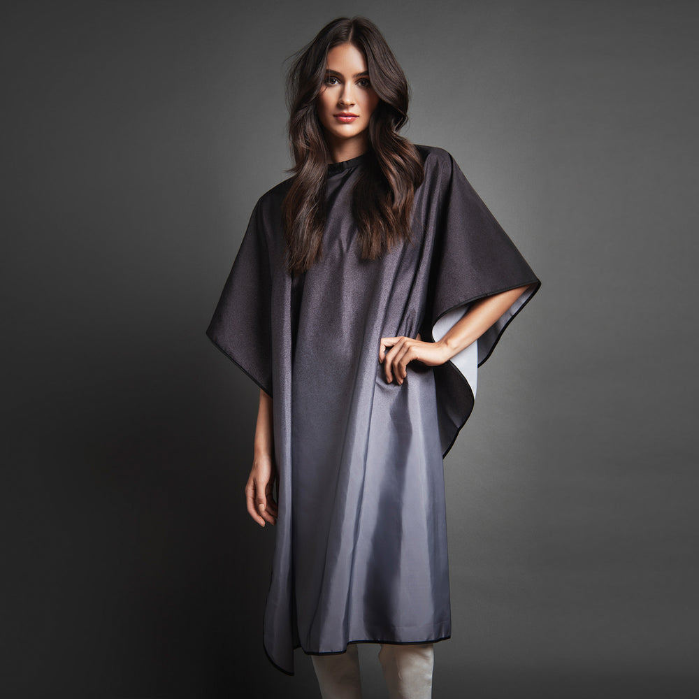 Teflon®-coated, water repellent, lightweight and breathable hairstyling and hair cutting cape.