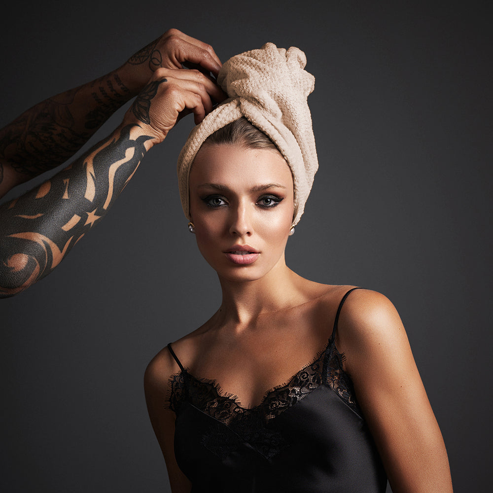 Ultra absorbent bleachproof microfiber dries hair faster, reducing damage and can be washed with bleach yet the towel will maintain its original color. Super plush, friction-free material is gentle and non-abrasive on fragile wet hair and skin. Part of the Studio Experience™ collection.