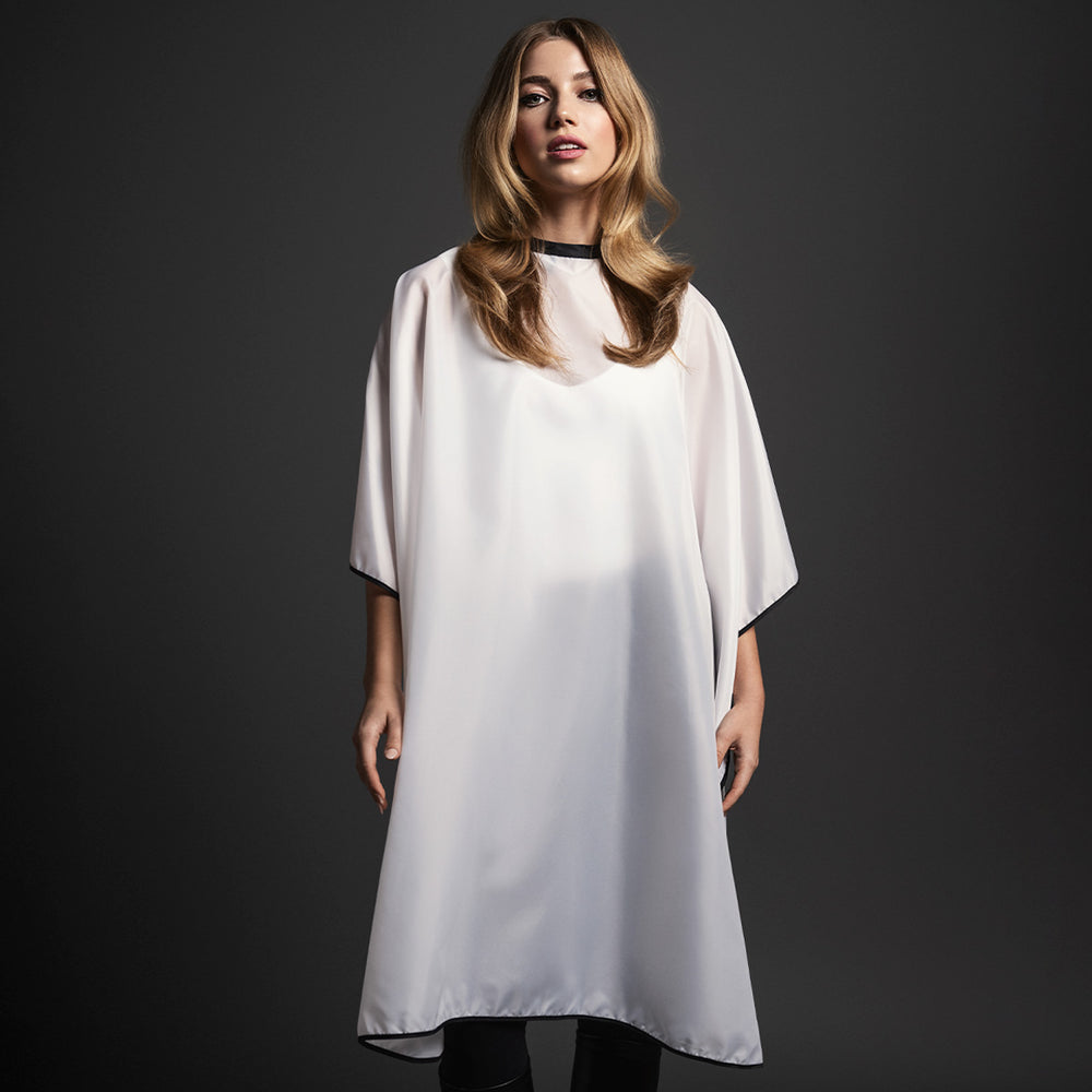 Teflon®-coated, water repellent, lightweight and breathable hairstyling and hair cutting cape.